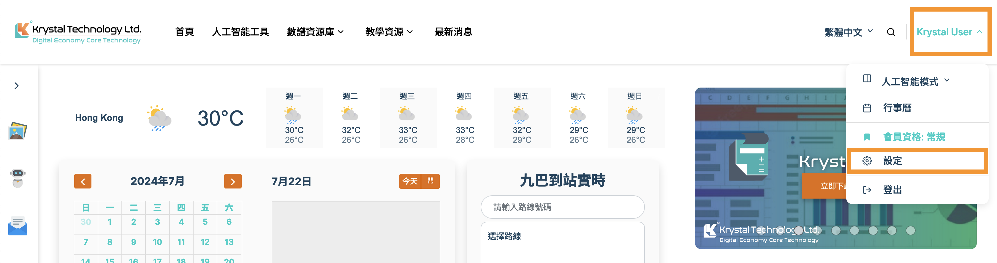 在您登入之後,您可以透過點擊頁面右上角的使用者選單,選擇「設定」選項。